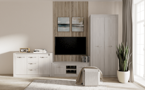 Двухстворчатый шкаф Монако относится к одноименной модульной серии. Модель не имеет вычурного декора и лишних деталей, выполнена в сдержанном и лаконичном стиле. Комплектация шкафа представляет собой ниши для хранения вещей в сложенном виде, а также отделение с хромированной штангой для одежды на вешалках. Для создания модели используется качественная ЛДСП цвета белого ясеня. Створки дополнены изящными ручками.