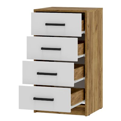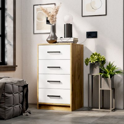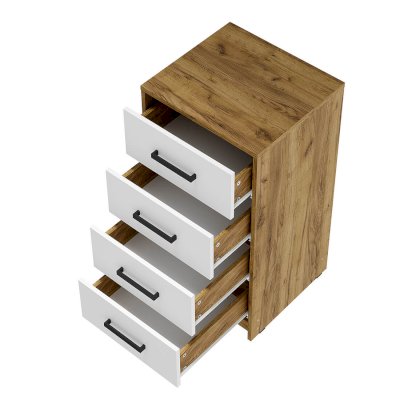 Комод Мия КМ-02 - современный компактный комод с вместительной системой хранения, который станет ярким акцентом в интерьере Вашего дома. Вместительные глубокие ящики на роликовых направляющих обеспечивают легкую эксплуатацию. Высокое качество по доступной цене - это комод Мия КМ-02.