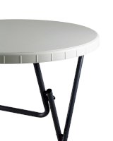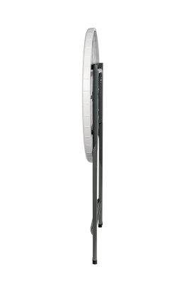 Диаметр стола 81 сантиметр обеспечивает комфортное размещение 3-4 человек, и для масштабного события может потребоваться несколько изделий. Однако благодаря складной конструкции модель займет минимум места при перевозке, благодаря чему столы можно перевезти небольшой партией и на легковом транспорте. Для каркаса используется стальная труба особой прочности, а столешница выполнена из 100% не переработанного полиэтилена HDPE (полиэтилен высокой плотности). Считается одним из более безопасных видов пластика. HDPE пластик выдерживает высокие нагрузки, не трескается при ударной нагрузке, эластичен в диапазоне температур от –70 до +100 °С.