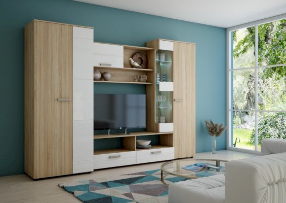 Цвет фасада: Дуб Сонома светлый/Белый глянец
