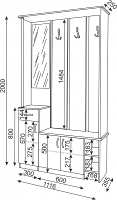 Комплектация вешалка / зеркало / тумба