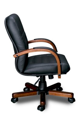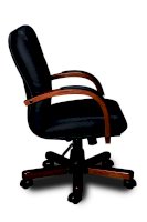 Кресло с низкой спинкой, с подлокотниками дугообразной не замкнутой формы с мягкими накладками обитыми в цвет кресла.