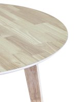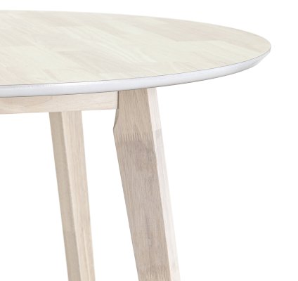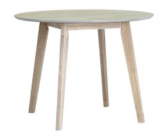 Обеденный деревянный стол из массива гевеи, выполненный в цвете беленого дуба. Столешница выполнена из МДФ плиты, покрытой натуральным шпоном гевеи. Ножки из массива гевеи. Размер столешницы 100х100 см.