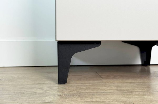 Корпус шкафа изготовлен из ЛДСП, что гарантирует прочность и долговечность. Фасад, покрытый МДФ в плёнке ПВХ, не только выглядит эстетично, но и защищает шкаф от повреждений. Особое внимание заслуживает фрезеровка фасадов, которая придаёт шкафу изысканный вид.