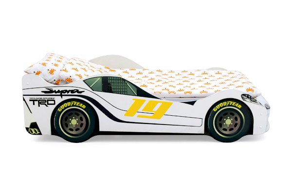 Кровать-машина “Супра” для мальчиков и девочек от 2 до 10-12 лет. Основа конструкции – безопасное ЛДСП, которое соответствует всем стандартам качества в области экологии и охраны здоровья. Ортопедическое основание кровати выдерживает вес до 200 кг.