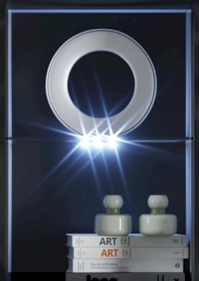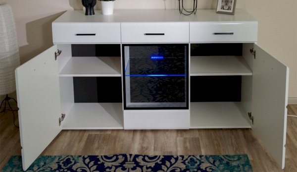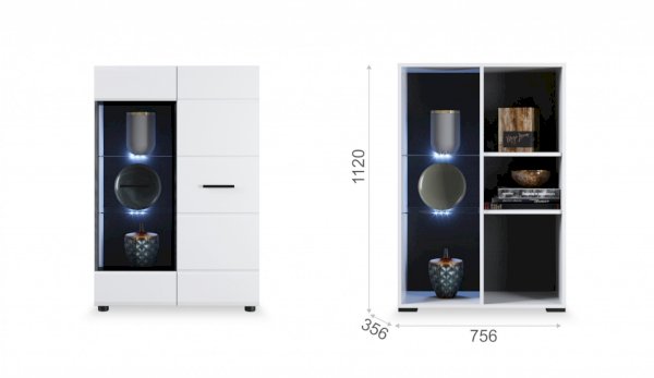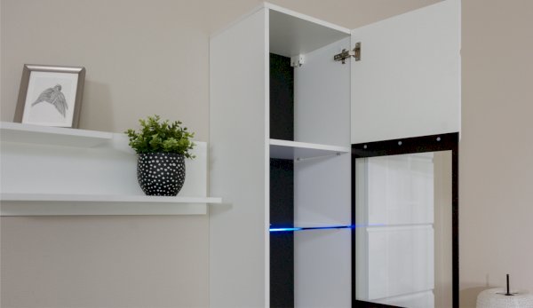Светодиодная подсветка синего цвета для полок 2 класса Йорк подойдет к навесному пеналу-витрине 02 и комоду с витриной.