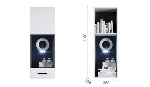 Внимание! Светодиодная подсветка синего цвета для полок 1 класса Йорк предназначена для навесных пеналов-витрин 01 (левой и правой) и комода с 2 дверями, витриной и 2 ящиками.