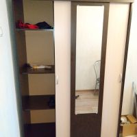 Шкаф-купе Бассо имеет хороший дизайн с зеркалом. Сочетание цвета Венге и дуба соответствует моему вкусу. На мой взгляд, довольно вместительный для небольшой квартиры, в то же время занимает немного места и гармонирует со светлой прихожей. Из недостатков: задняя стенка составляется четырьмя тонкими листами картона или очень тонкого ДСП. По инструкции ее нужно прибивать молотком, что не очень хорошо для конструкции такого хрупкого шкафа. Возникли сложности с плотность прилегание одной двери к боковой стенке. Детали, с помощью которых крепятся верхние ролики, неудобно прикрепляются к фасаду толстыми болтами. Сложно добиться ровного ровного положения роликов на фасаде. Зеркало пришлось клеить самостоятельно. Это не порадовало. В общем, наверное, шкаф хороший за такую цену и для тех, у кого не слишком дорогой ремонт в квартире.