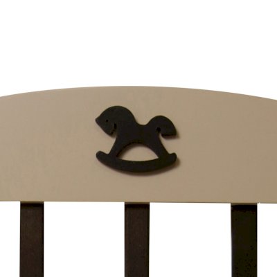 Кроватка декорирована фигуркой лошадки.