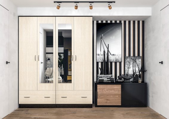 Классный шкаф! Бюджетный и вместительный. Пришёл хорошо упакован, без сколов и трещин, собрали за пол дня. Разъеденили его и совместили с угловым из той же коллекции. Зеркала пока не устанавливаем, думаем, нужны ли они вообще. Вобщем, мы довольны!