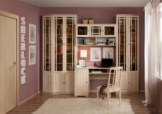 В наше время всё больше людей работают дома: деловые люди, которые продолжают работу после офиса по вечерам, творческие личности, для которых необходима спокойная домашняя обстановка на рабочем месте. Организовать своё рабочее место в современной квартире поможет новинка от Глазовской мебельной фабрики — библиотека SHERLOCK.